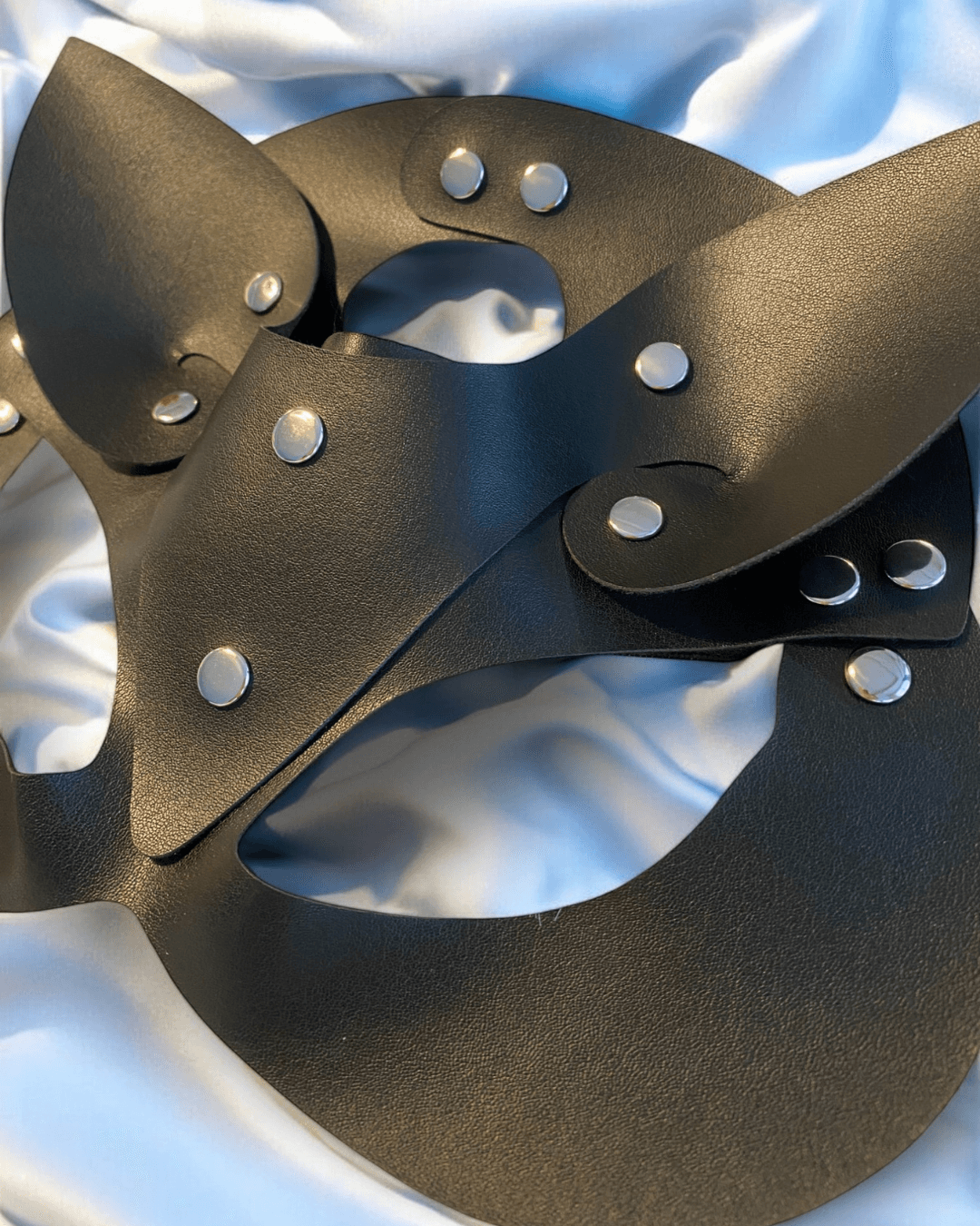 Masque Félin Noir, yumuşak deri dokusu ve metal yuvarlak zımba detaylarıyla dikkat çeken şık ve çarpıcı bir tasarıma sahiptir. Arkasında bulunan elastik lastik, kolay kullanım ve mükemmel uyum sunar.